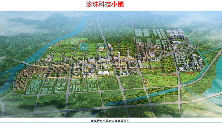 规划策略:规划提出新溪珍珠科技小镇发展定位:融入汕头市华侨新城试验区总体发展格局,融入汕头市华侨新城试验区总体发展格局,打造集 “产学研 生态旅游 宜居生活”于一体的。