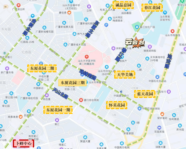 医疗教育方面,医疗配套算是项目的一大优势,与汕头大学第二附属医院不过一个路口的距离,且在北区还有金平区中医医院另一医疗机构。
