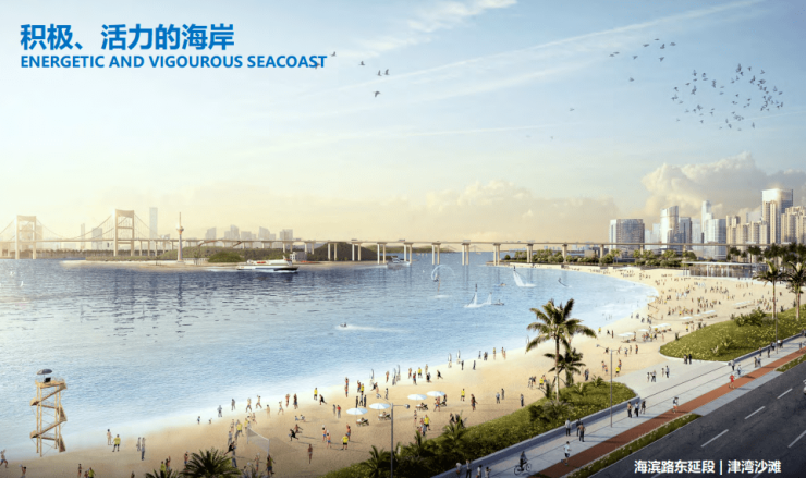 不过据了解,此次规划打造的津湾水上乐园仍旧不是大家心目中想的那种如同“长隆”的水上游乐园。从项目效果图可以看到,津湾水上乐园更多是一个休闲海滩,在图中是看不到任何大型水上游乐设施建筑。