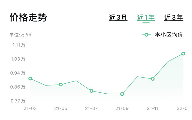 据显示,该小区近一年均价持续上涨,目前较新均价为10846元/m²。