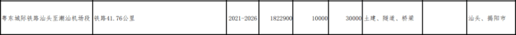 ● 建设内容及规模:建设汕头高铁站配套市政工程,包含站前东广场工程、南北枢纽集散系统工程及轨道交通预留工程等