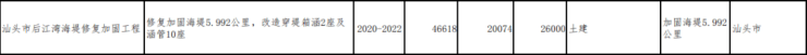 ● 建设内容及规模:修复加固海堤5.992公里,改造穿堤箱涵2座及涵管10座