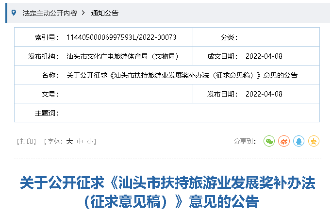 为了更好扶持汕头旅游项目的建设,近日市文物局也发布了《扶持旅游业发展奖补办法(征求意见稿)》,其中明确表示,凡是被评定为高级旅游度假区、省级旅游度假区的单位,将分别给予一次性奖补资金100万元、50万元。