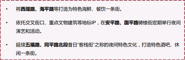 规划内容:建议成立夜间工作委员会统筹小公园开埠区夜间经济发展,负责保护商户、消费者安全的安全摄像头管理、建筑物和设备检查、互联网管理、公共关系、季节性装饰、夜间巡逻等。